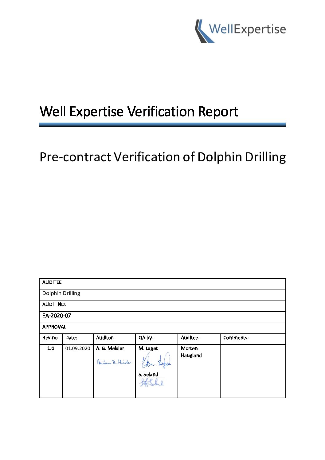 The objective of the verification was to ensure DDAS and Borgland Dolphin are prepared and suited for the PP&A operations with regards to resources, competence, equipment, and management system. The verification was conducted 17th August 2020 via Teams due to the current Covid-19 pandemic situation.
