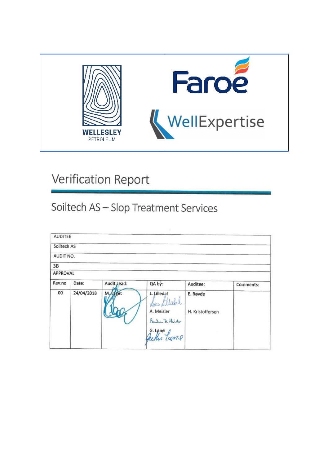 Norge and Wellesley Petroleum’s Verification planned conducted at Soiltech’s premises in Tananger.